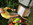 Auf einem Tisch im Mittelpunkt waren verschiedene Obst- und Feldfrüchte dekorativ angeordnet.