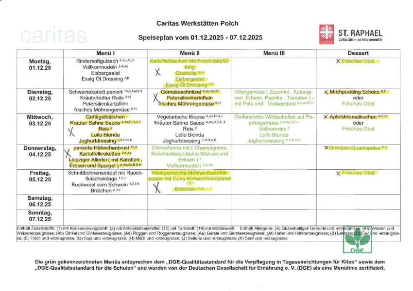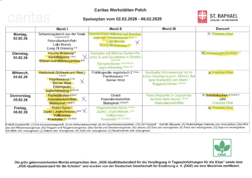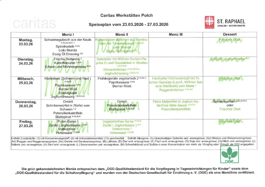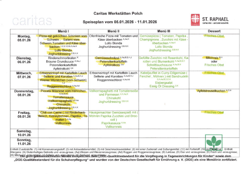 Den Essensplan finden Sie in der Kita gegenüber von unserer Pinnwand.